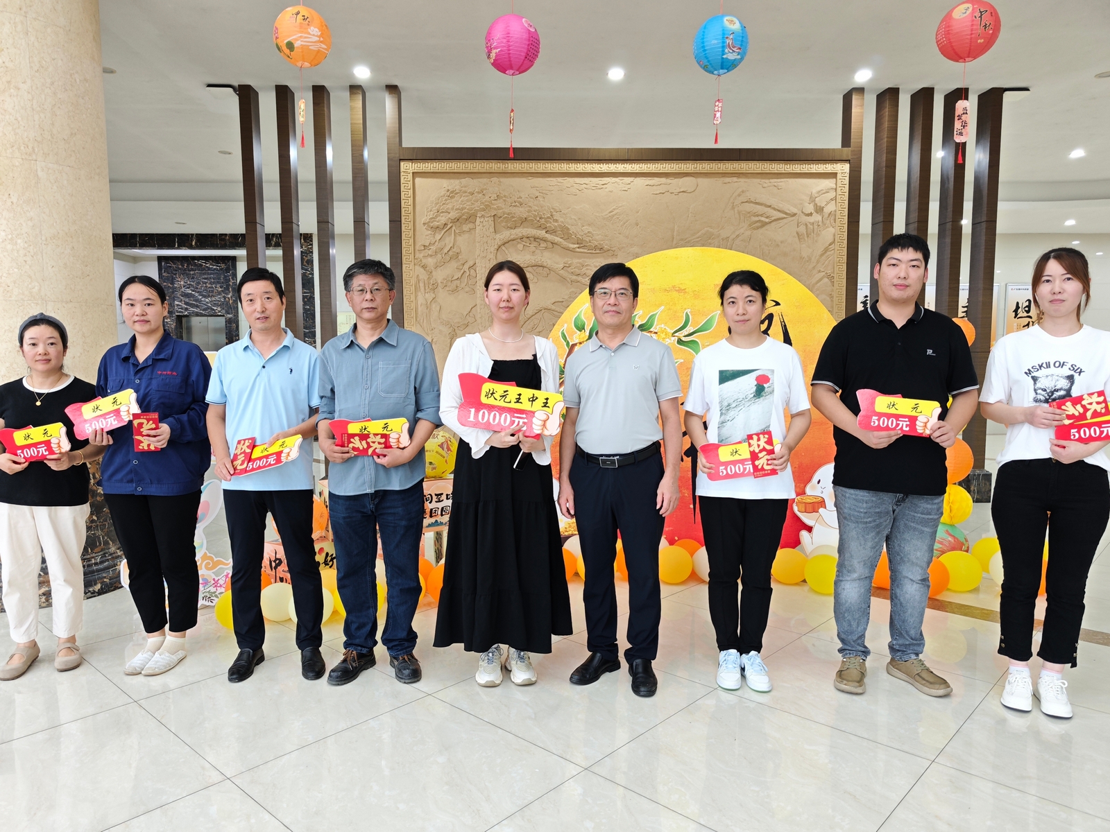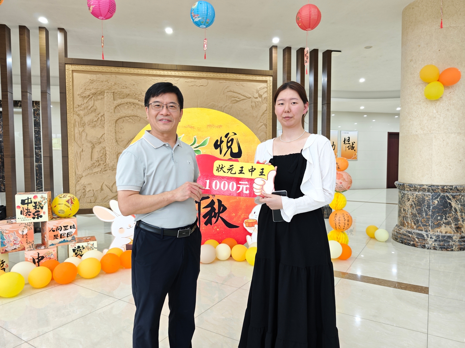经过多轮激烈角逐,各桌“状元”相继诞生,而最终“状元王中王”的角逐,则将活动推向高潮。李聪贤总经理亲自为获奖员工颁奖,并与大家合影留念,将这份专属中秋的喜悦与荣耀永久定格。